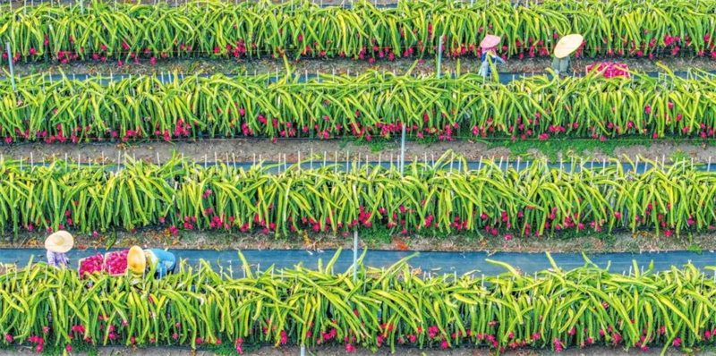 農(nóng)戶(hù)在東山現(xiàn)代農(nóng)業(yè)產(chǎn)業(yè)示范園內(nèi)采摘火龍果。